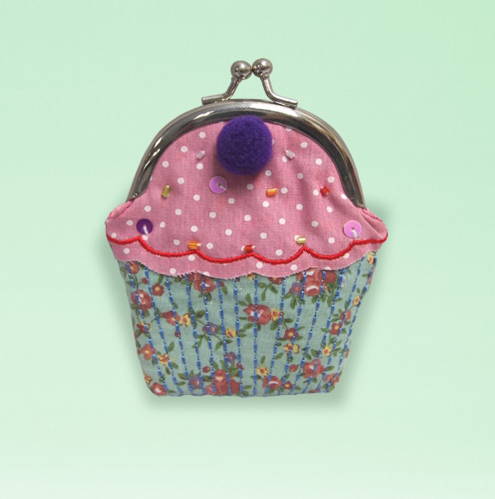A AQUA AND PINK FABRIC CUPCAKE COIN PURSE. GREAT FOR KIDS, XMAS STOCKING FILLERS, AND PART GIFTS. ?9 x 10 x 2.5cm